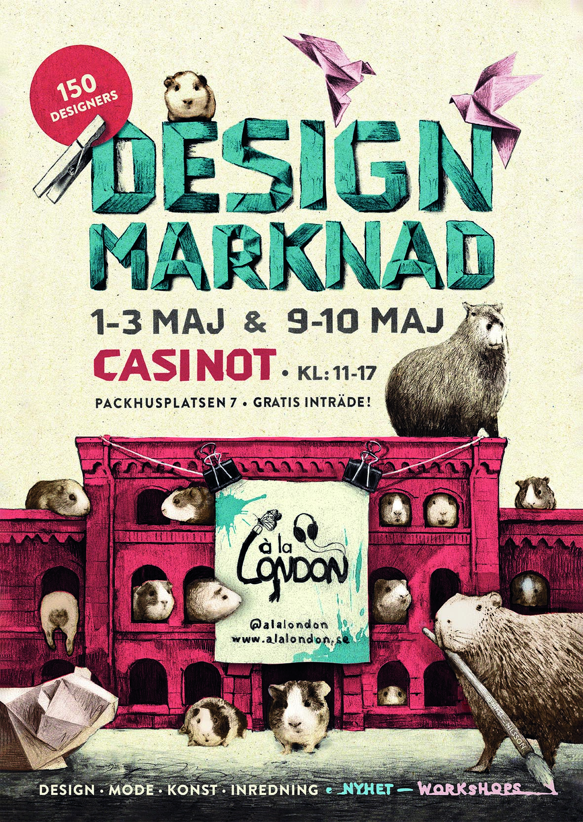 Det här kommer att bli en marknad med extra allt! under två helger fyller à la London den stora tegelbyggnaden på Packhusplatsen 7, där Casino Cosmopol tidigare låg, med det bästa inom ny, småskalig design. Omkring 150 designers varje helg kommer att finnas på plats och det blir som vanligt en härlig blandning av design, mode, konst och inredning. Gratis inträde!