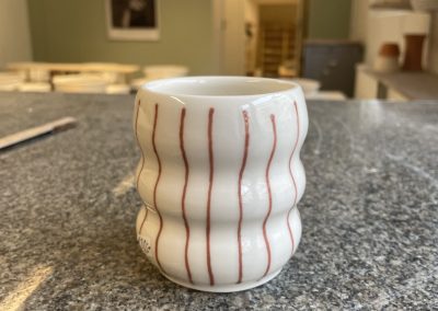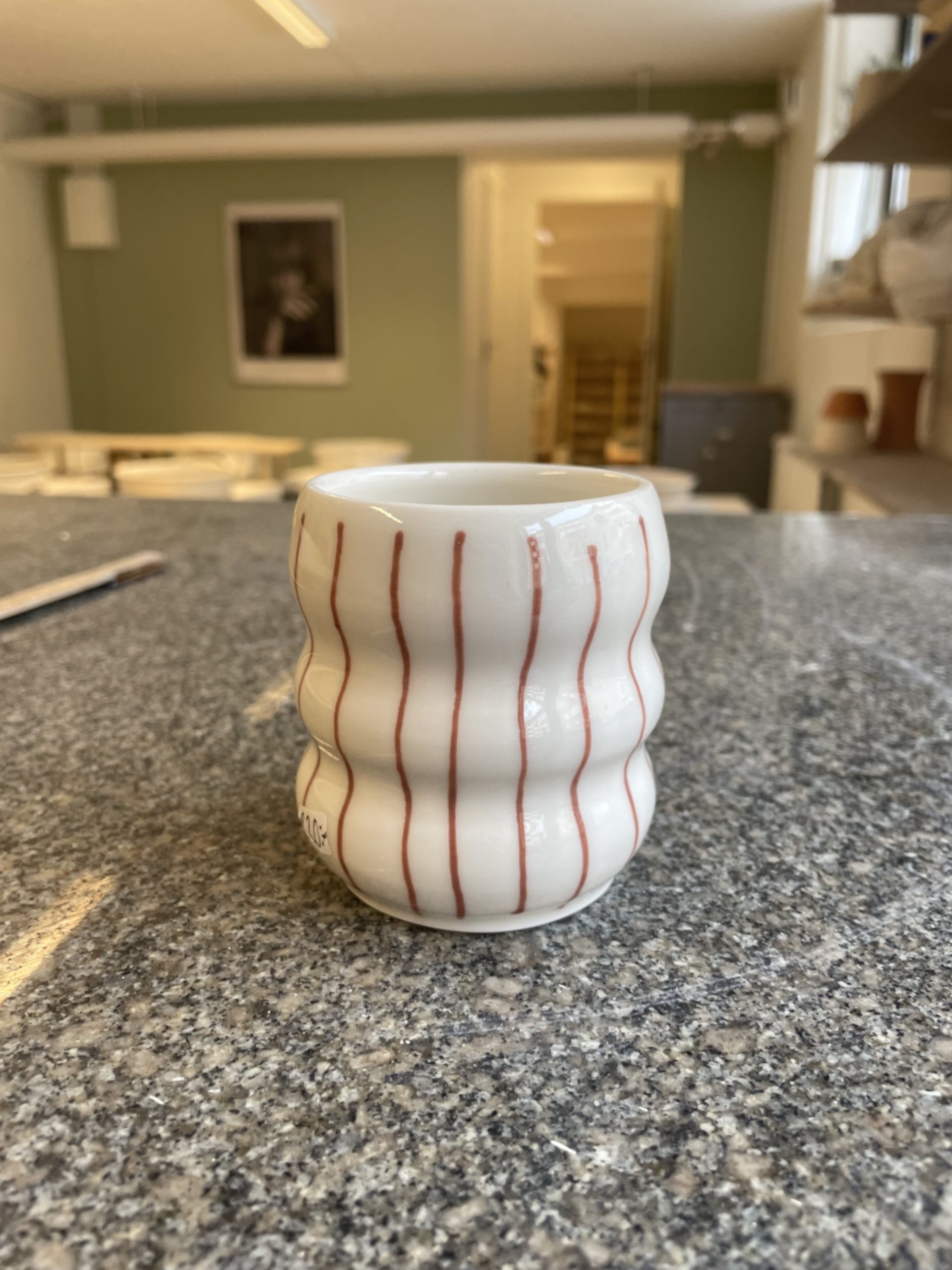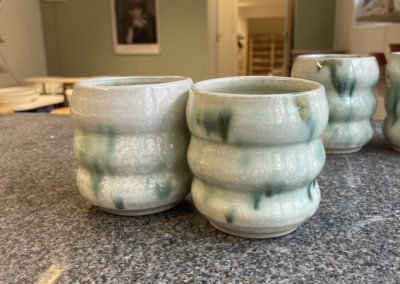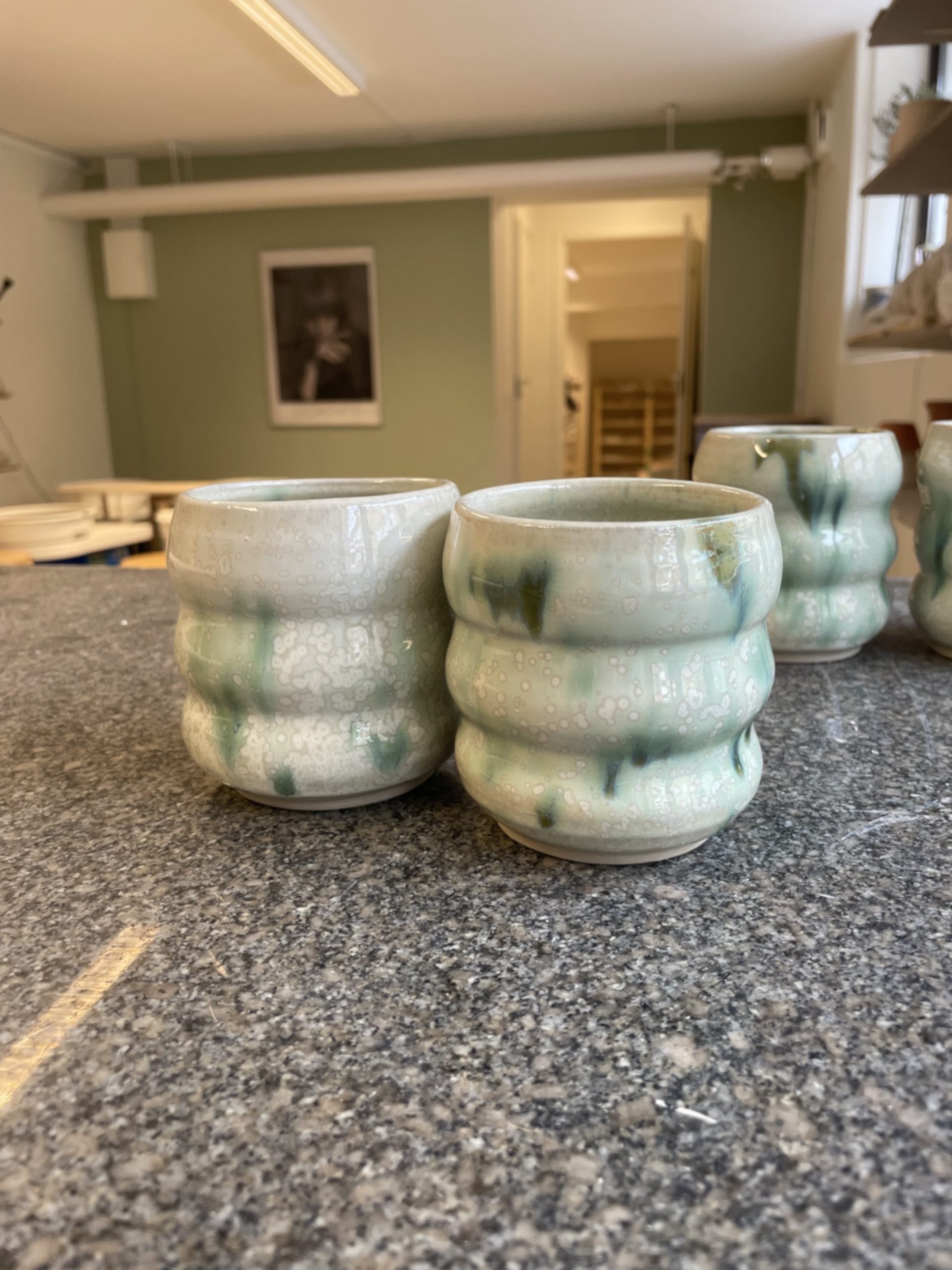 Edith drejar både i stengods och i porslin. Använder främst en skiftande glasyr i alternativen grönt, blått eller grått. Eller så målar hon specifika motiv på porslinslera som ger en vit bakgrund. Drejningen är hennes bästa moment där tid och rum försvinner och hon drejar ofta koppar eller krukor eller vaser.