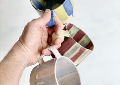 Form och färgsättning är ofta lekfull och spontan och handens avtryck får gärna synas och tillföra något unikt i varje föremål.