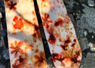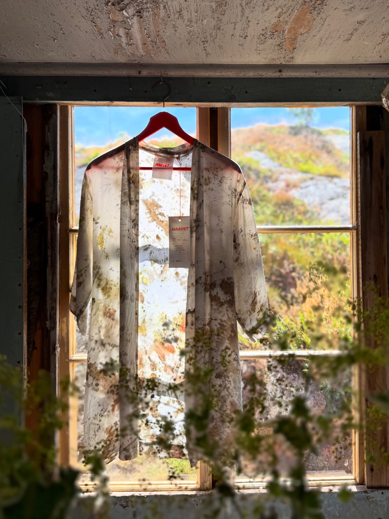 Harvet växtfärgar återbrukad textil. Till vårens majmarknad tar hon med sig botaniska konsthantverk i form av plagg, accessoarer såväl som inredningsartiklar i en behaglig färgskala där naturen fått bestämma.