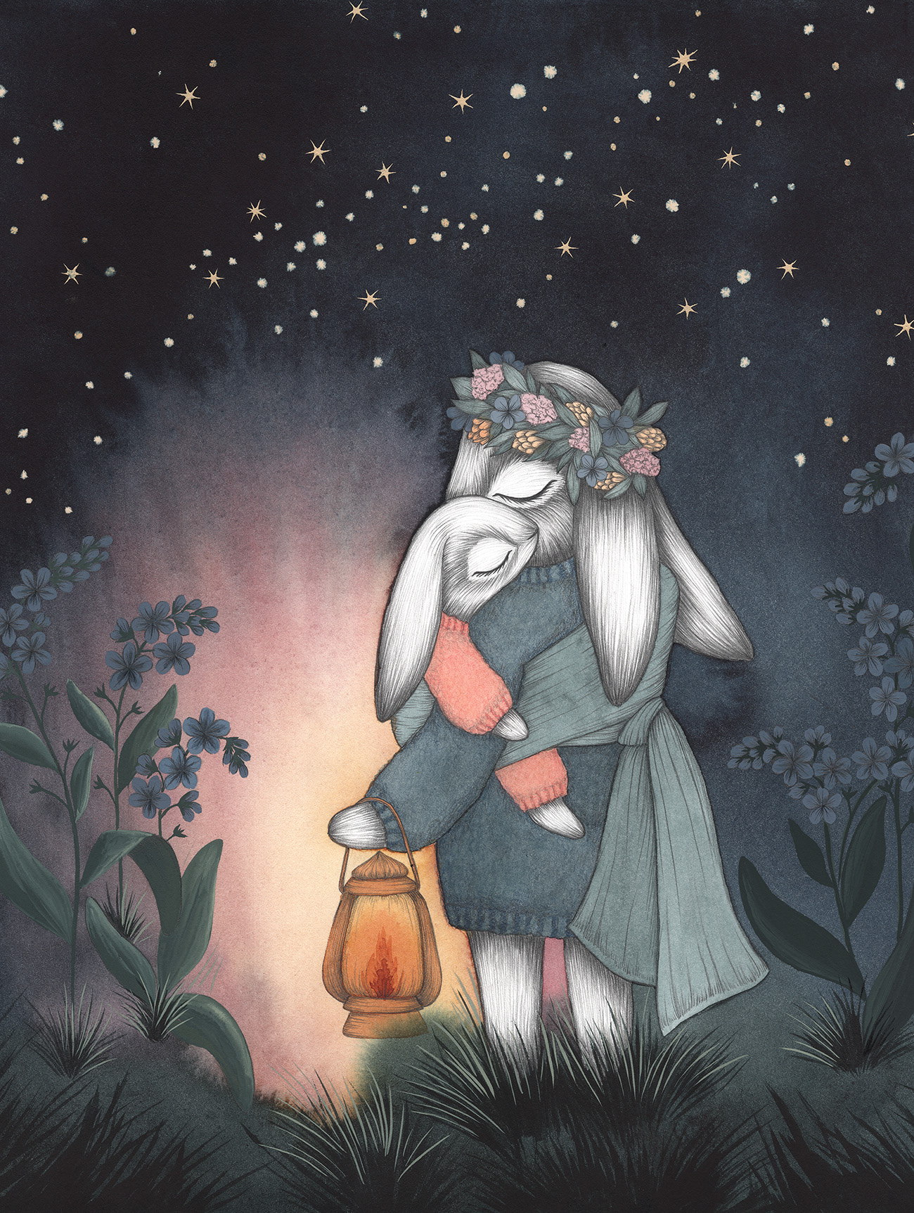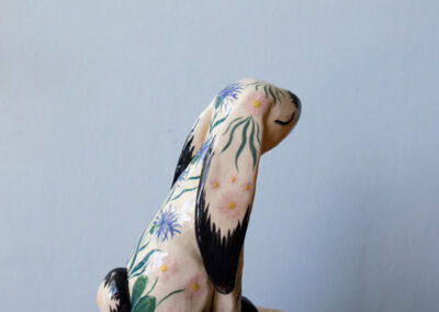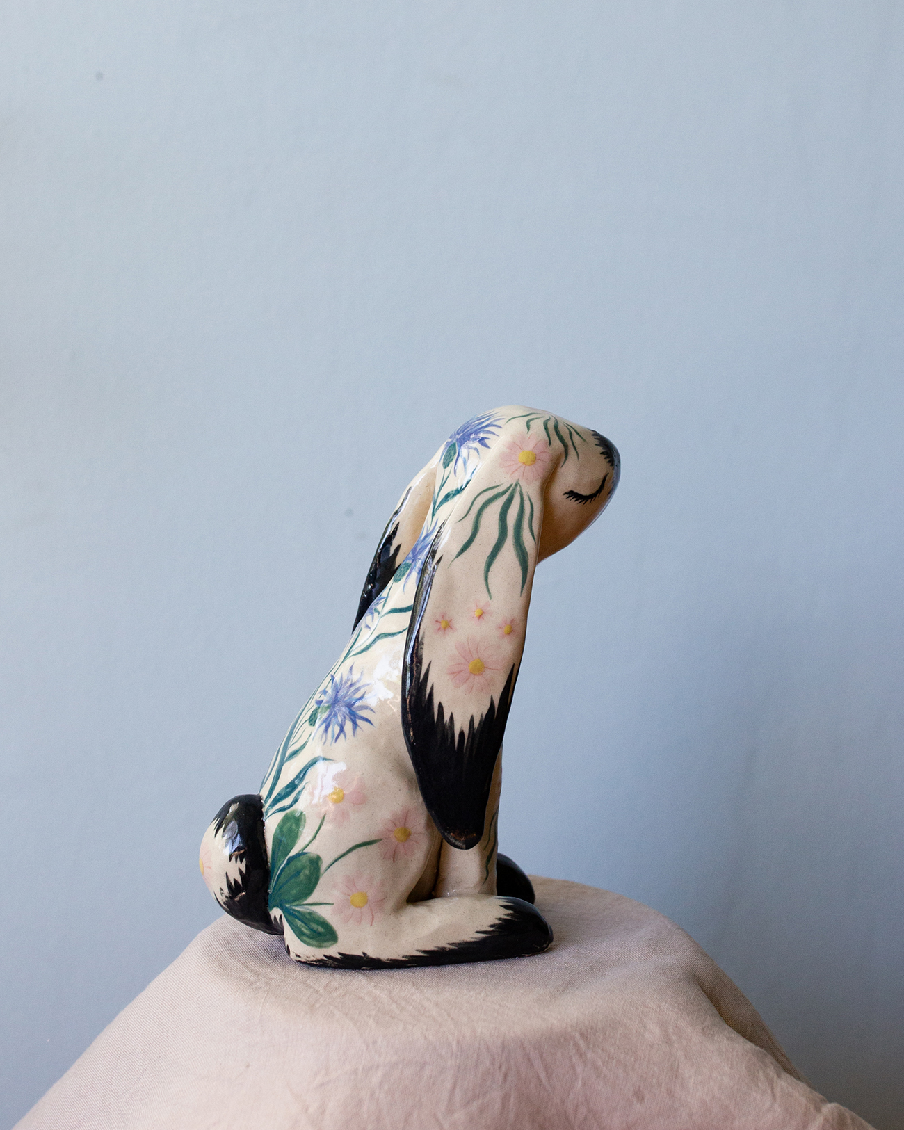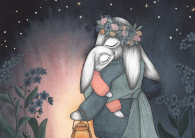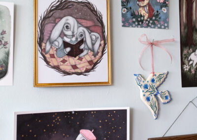 Kajsa målar med akvarell och blyerts men skapar även skulpturer och unika bruksföremål i keramik, allt med samma värme och kärlek till det lilla barnet och naturen.