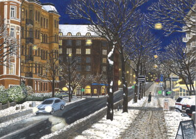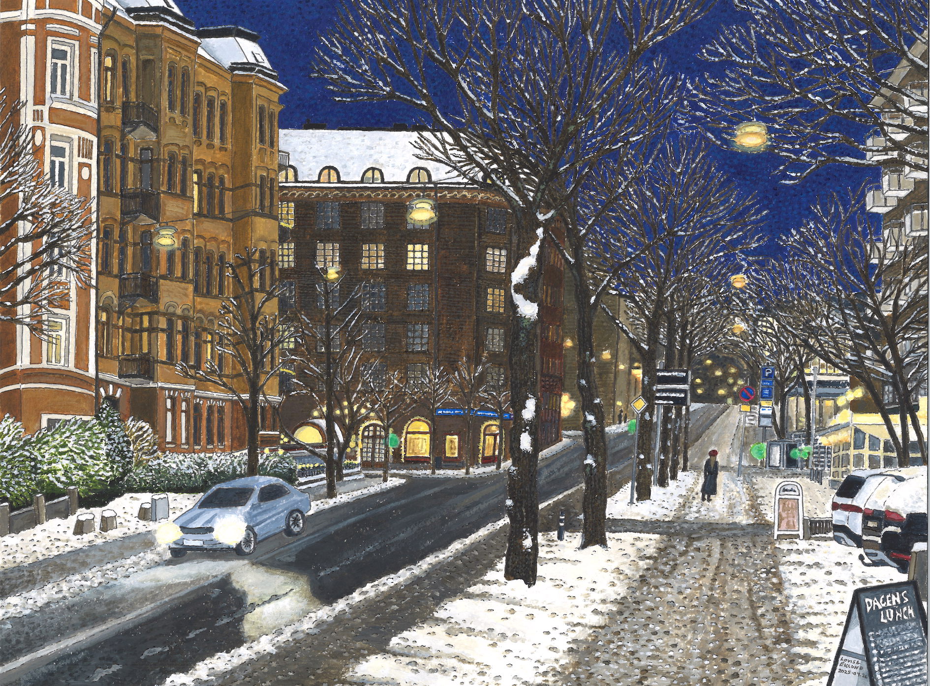 Lovisa Eklund är bildkonstnär med ett särskilt intresse för platser och rum, dess stämningar och känslorna de väcker. Bland motiven syns Göteborg under olika årstider och tider på dygnet – det är pampiga stenhus och landshövdingehus, upplysta innerstadsgator, biografer i kvällsmörkret, spårvagnshållplatser och små kvartersbutiker lite utanför centrum. Där syns också interiörer, rum, där färgerna tillåts vara lite starkare, lite gladare, som i retroköket och 70-talsbadrummet, som på de gamla snurrskivetelefonerna och på tjockteveapparatens testbild.