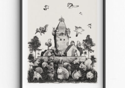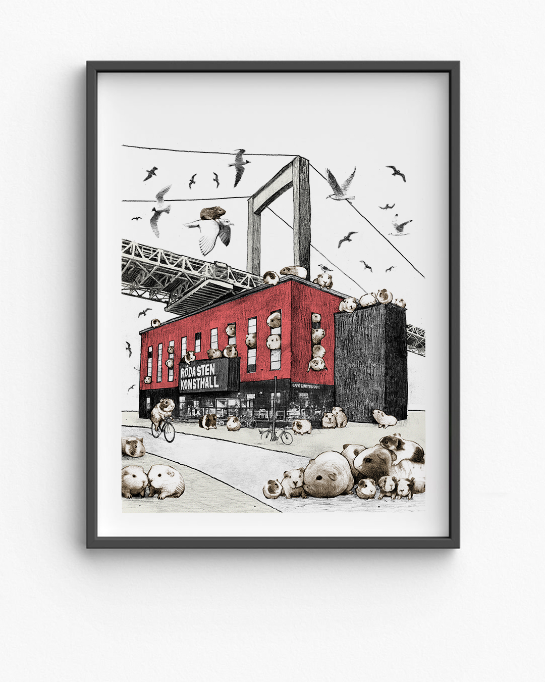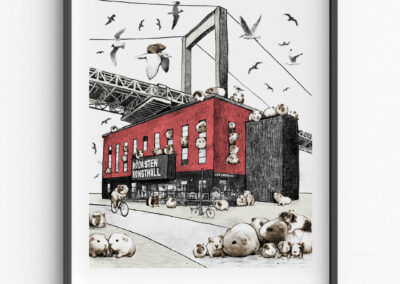 På à la London säljer han signerade fine art prints – från välkända Göteborgsmiljöer i en fantasifull tappning till mer drömlika rymdscener.