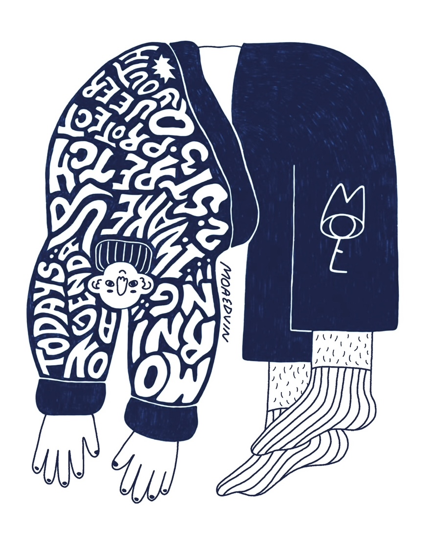 Moa Edvinsson, personen bakom Moaedvin, har en examen i grafisk design och illustration från Konstfack i Stockholm. Hon säljer handbundna böcker och annat på sin hemsida moaedvin.store