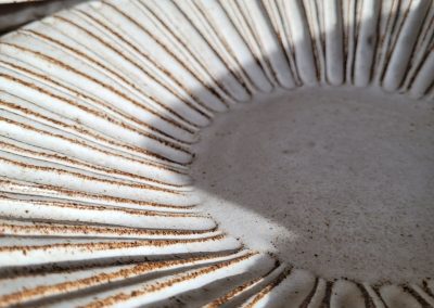 Hon jobbar med stengodslera och kavlar främst sina alster.