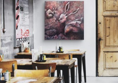 Sara Levin skapar unika målningar där fantasy möter lekfullhet. Med inspiration från bl.a. sci-fi, mytologi, naturväsen och drömlika landskap bygger hon världar som bjuder in betraktaren att stanna upp och upptäcka. Hennes uttryck är fullt av rörelse, symbolik och nyfikenhet. Varje verk blir en portal till något nytt och passar dig som vill fylla dina rum med färg, äventyr och nyfikenhet.