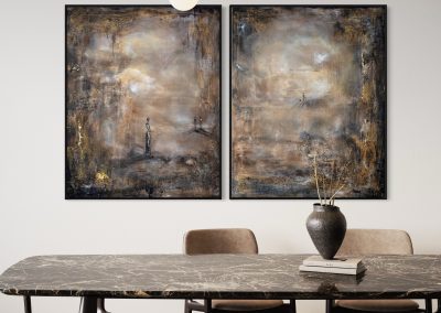 Lii Sjölander är konstnär och medium. I hennes verk blandas starka kontraster och klara färger med jordnära och mjuka nyanser. Hon fångar ljus och skuggor, låter dagsformen sätta agendan när det kommer till motiv. Hennes verk rör sig i den abstrakta sfären, vissa är helt abstrakta medan man i andra kan ana landskap och motiv i form av djur, själar, luftballonger eller byggnader.