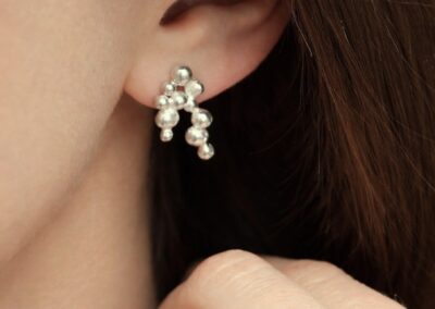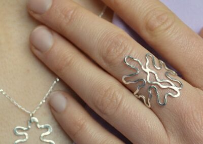 Her collection includes rings, earrings, necklaces, and bracelets – from minimalist everyday designs to bolder, chunkier pieces, as well as one-of-a-kind creations. Her aim is to create timeless and elegant designs made to be worn for years.