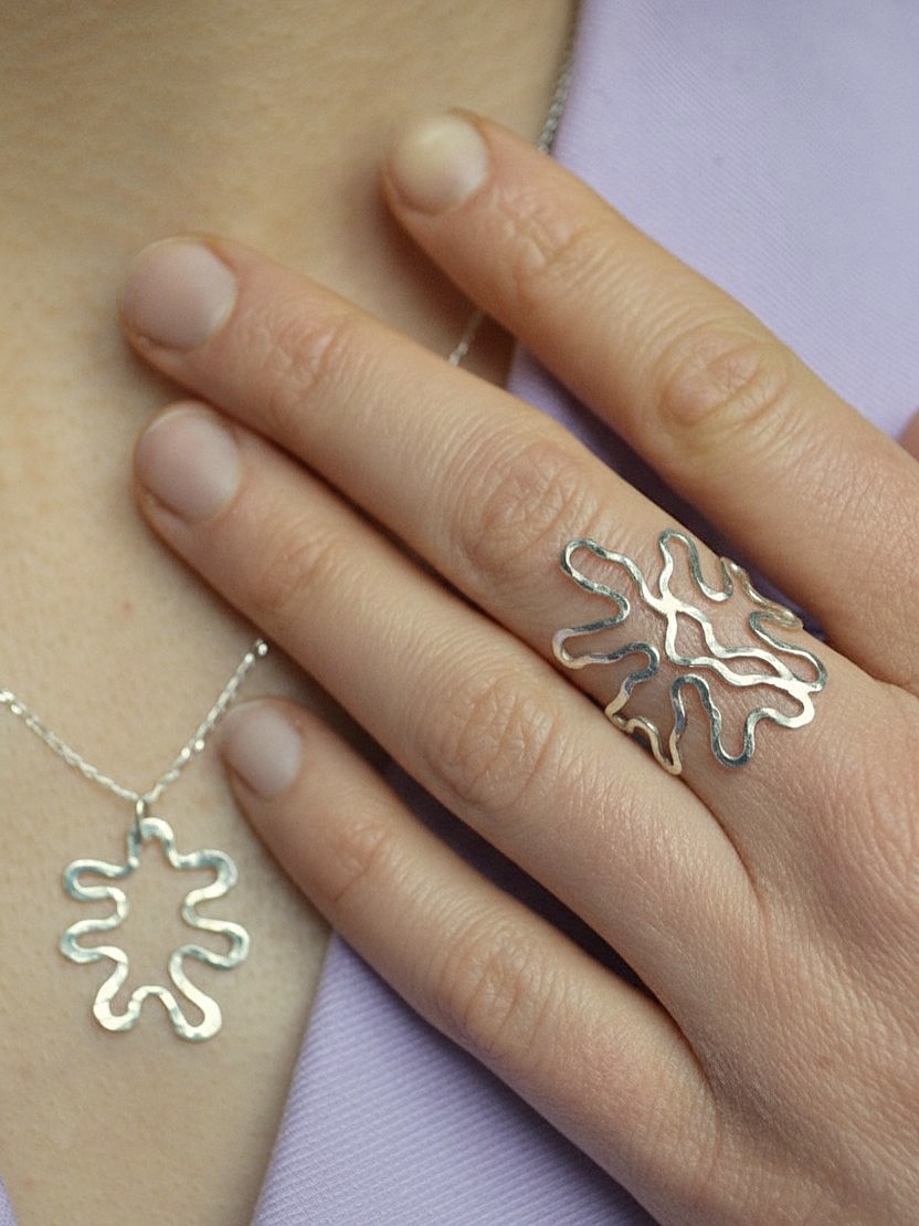 Tsitske is a silversmith who creates unique jewelry with soft, organic, and flowing shapes. Each piece is carefully handcrafted in 925 sterling silver in her small studio in Gothenburg.
